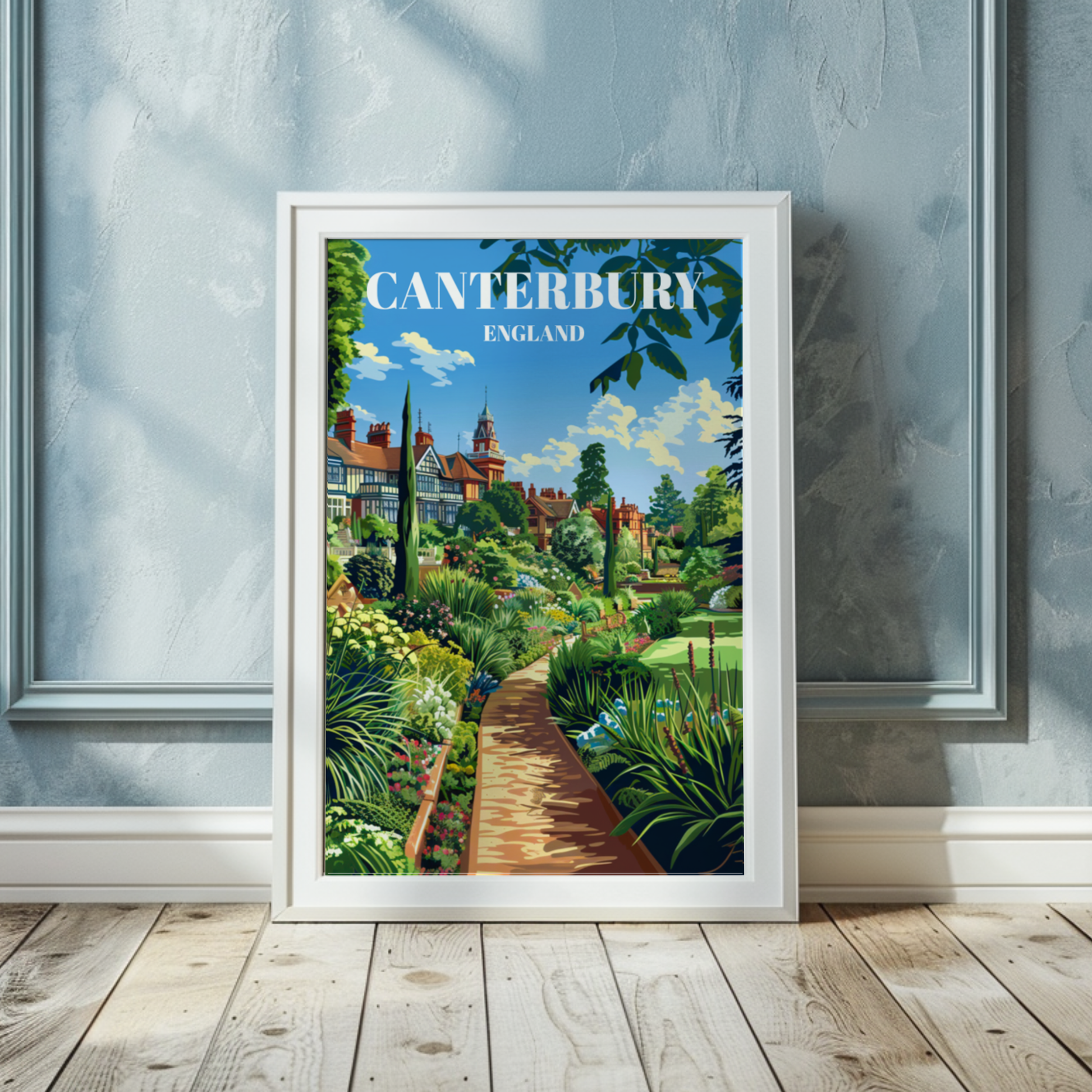 Step into the tranquil beauty of Mount Ephraim Gardens with this vintage-inspired travel poster capturing the essence of Canterbury, England. Adorn your walls with the scenic views and botanical splendor of this historic gem. Immerse yourself in the charm of English countryside with this rustic wall art print, perfect for nature lovers and travel enthusiasts alike. Whether you're seeking a souvenir of your adventures or a thoughtful gift idea, this poster evokes the allure of Mount Ephraim Gardens and the timeless allure of Canterbury. Let this artwork inspire your wanderlust and bring a touch of British elegance to your home décor.