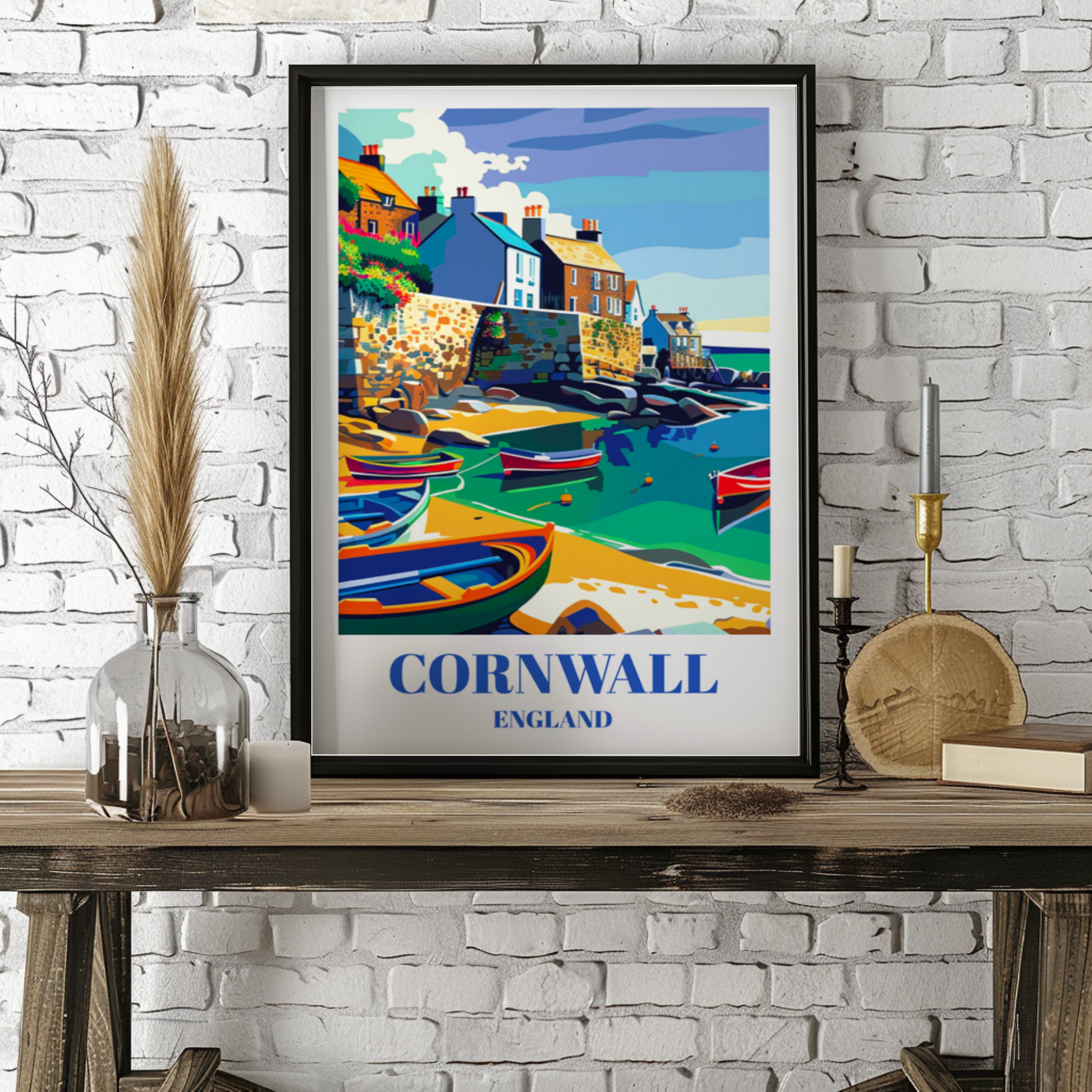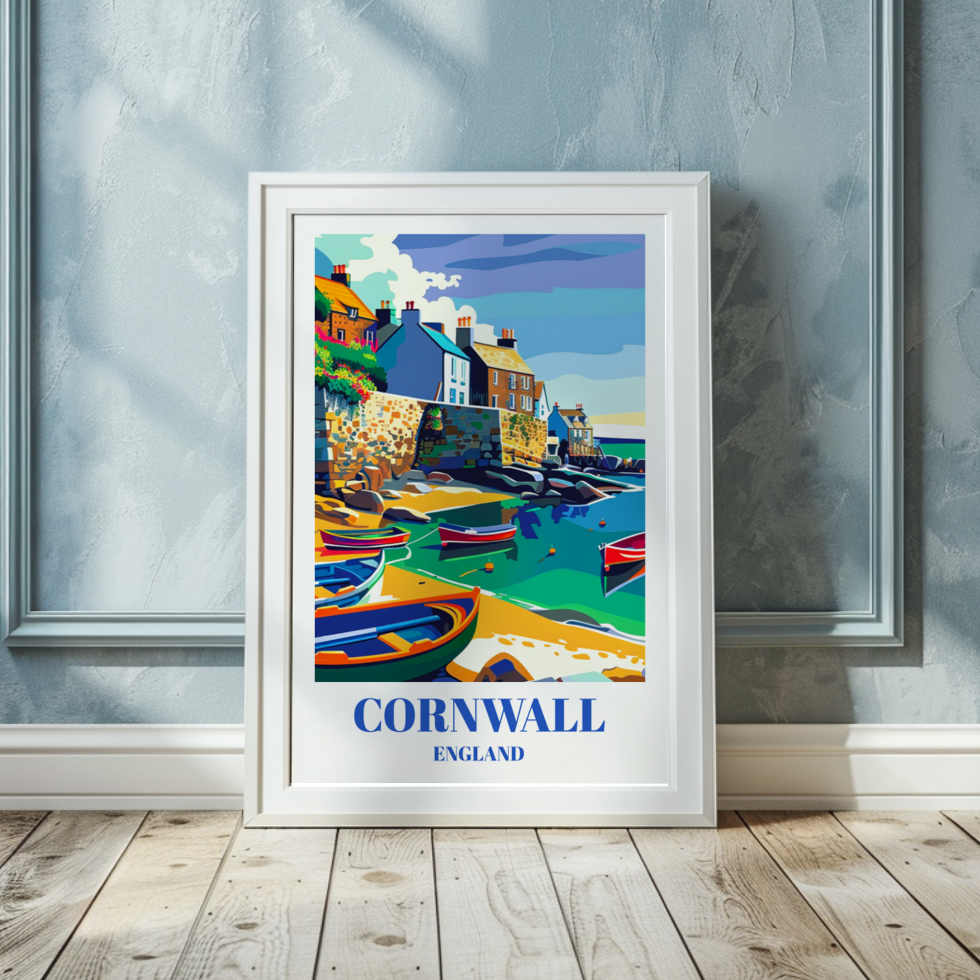 Discover the charm of Mousehole, a picturesque fishing village in Cornwall, England, with this stunning travel poster. Perfect for coastal wall decor, this print captures the quaint beauty of Mousehole's historic harbor and scenic seaside views. Ideal for nautical home decor, it brings the essence of a Cornish fishing village to your space. Whether you're a lover of vintage travel posters, a fan of UK coastal towns, or seeking a unique gift for travelers, this artwork is a perfect choice. Celebrate the allure of the Cornish coast with this beautiful, detailed print.