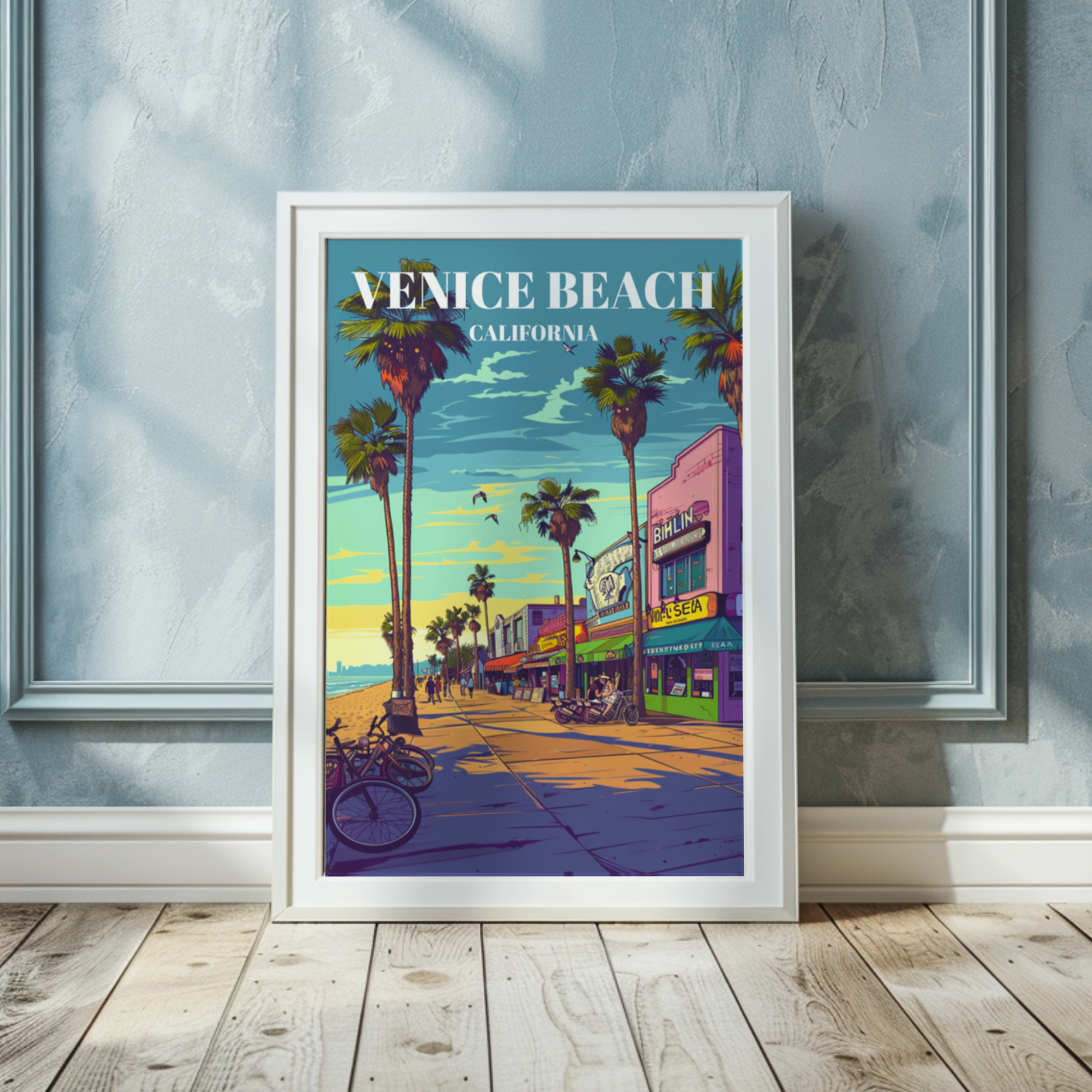 Venice Beach Travel Poster, Retro California Wall Art Print