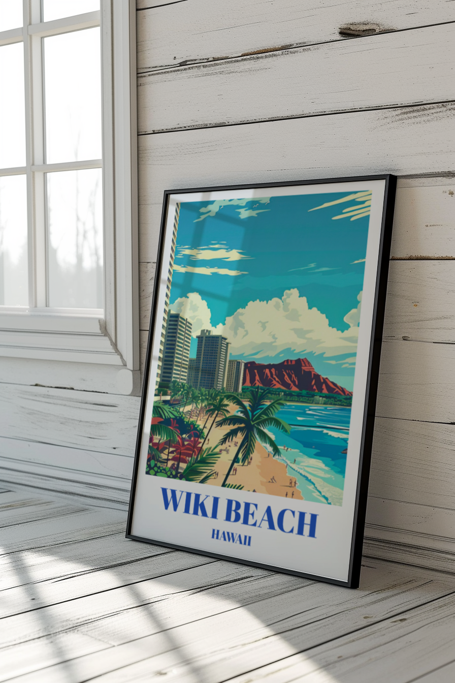 Waikiki Beach Hawaii Travel Poster, Hawaiian Wall Art Prin
