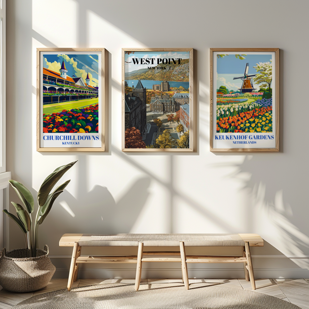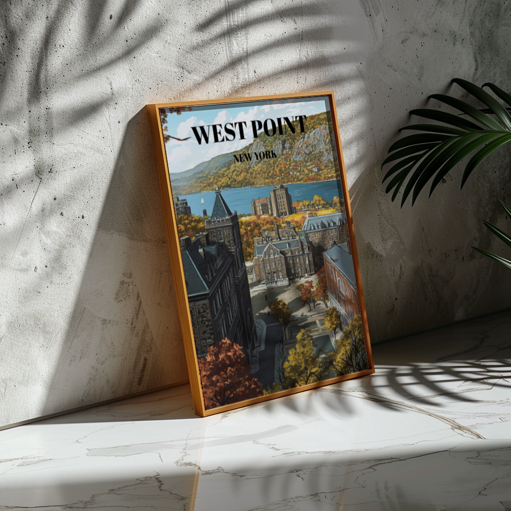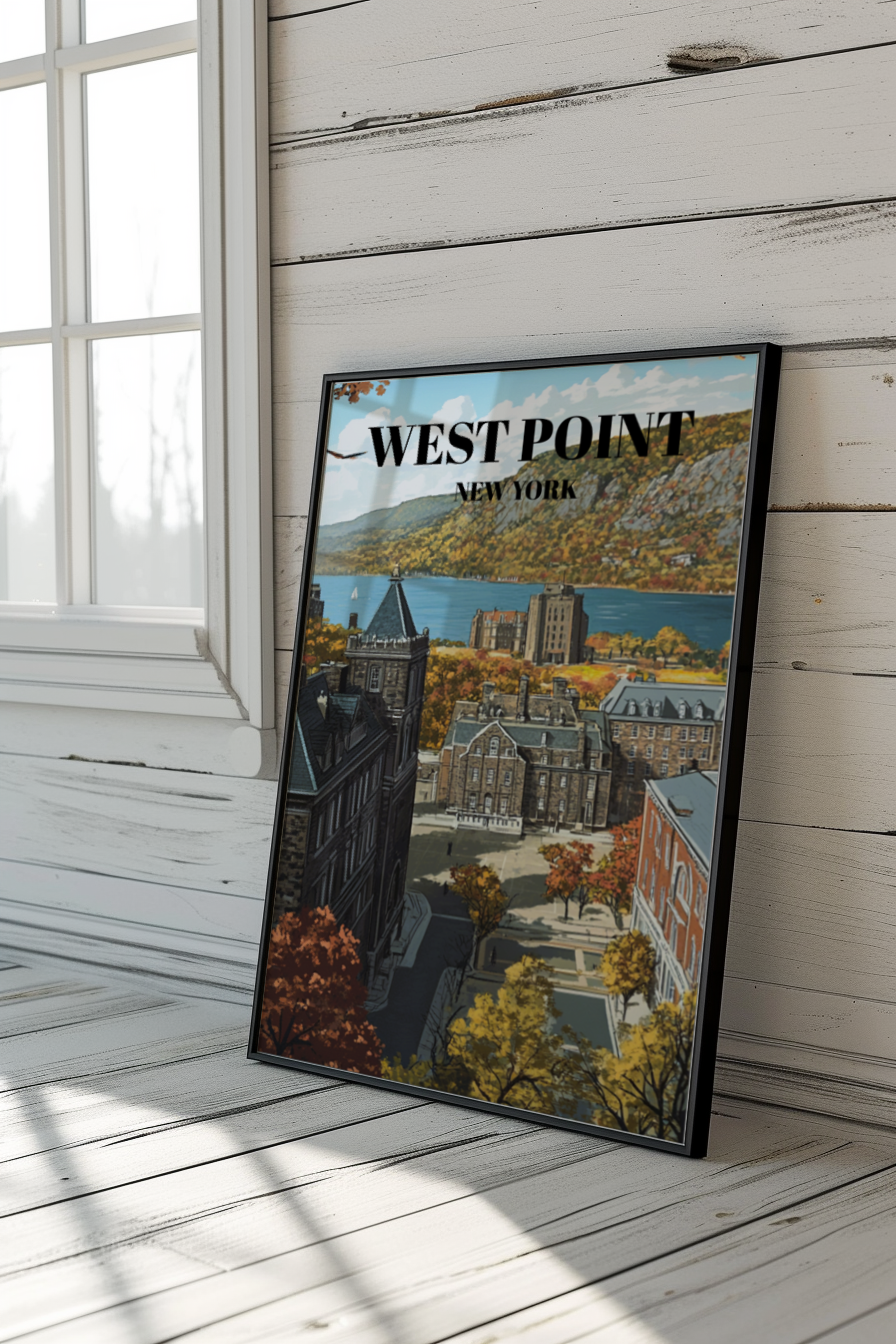 Celebrate the rich history and breathtaking scenery of West Point, New York with this beautifully designed travel poster featuring the iconic U.S. Military Academy on the banks of the Hudson River. Perfect for Army cadets, veterans, history buffs, and patriotic decor, this vintage-style wall art makes a thoughtful graduation gift or keepsake. Add timeless charm to your home, office, or dorm with this historic landmark print, showcasing one of America’s most prestigious institutions.